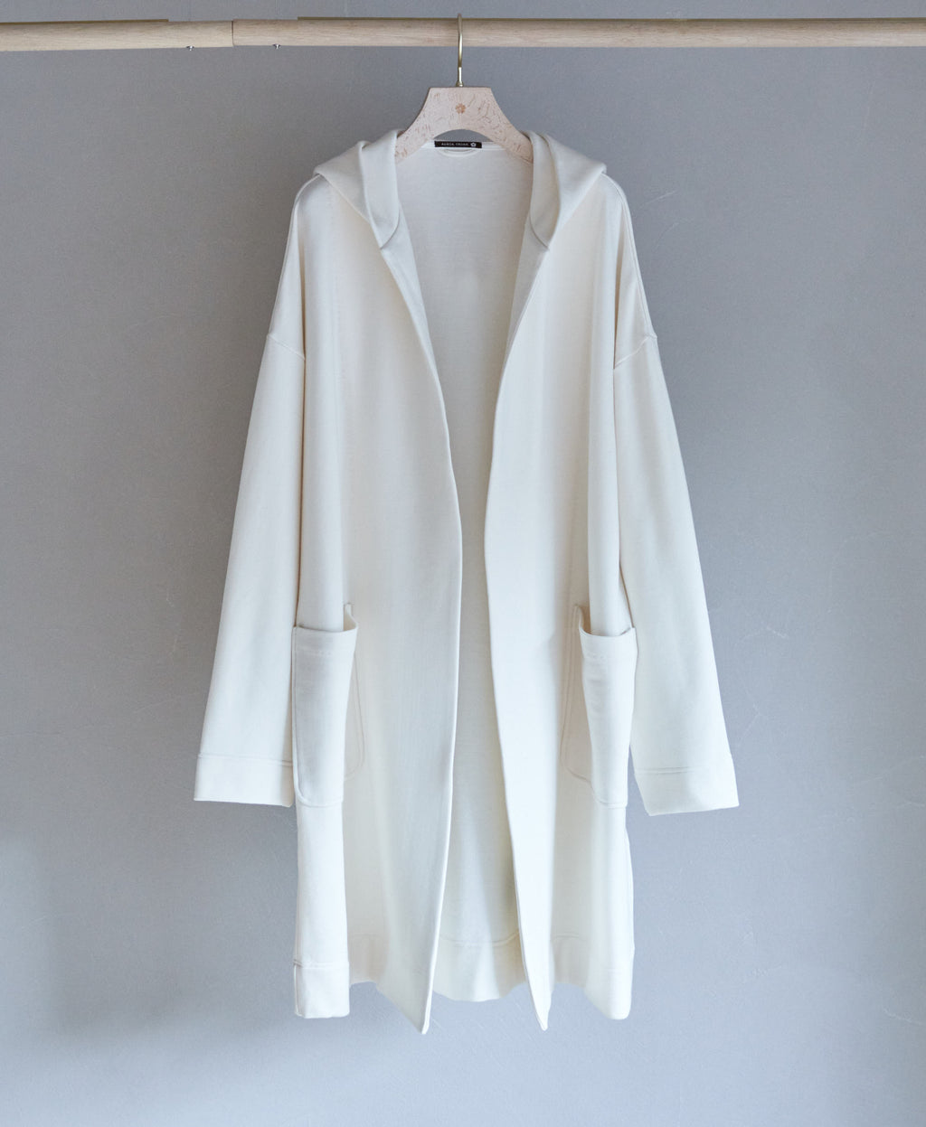 ボタンレスでさっと羽織れるシンプルさはジェンダーレスでご着用いただけ、大き目のパッチポケットがアクセント。