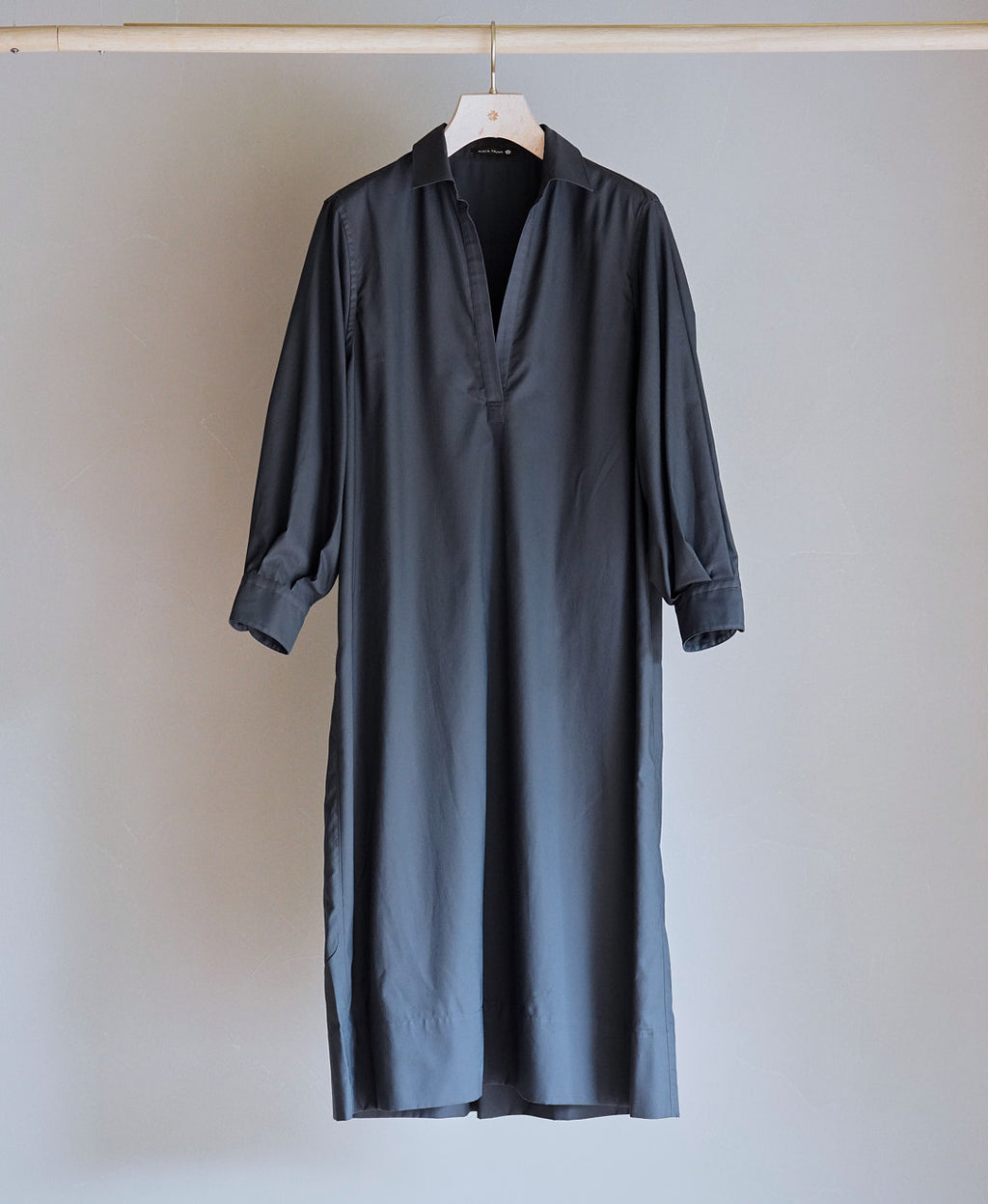 コットンバックサテン スキッパーロングシャツ