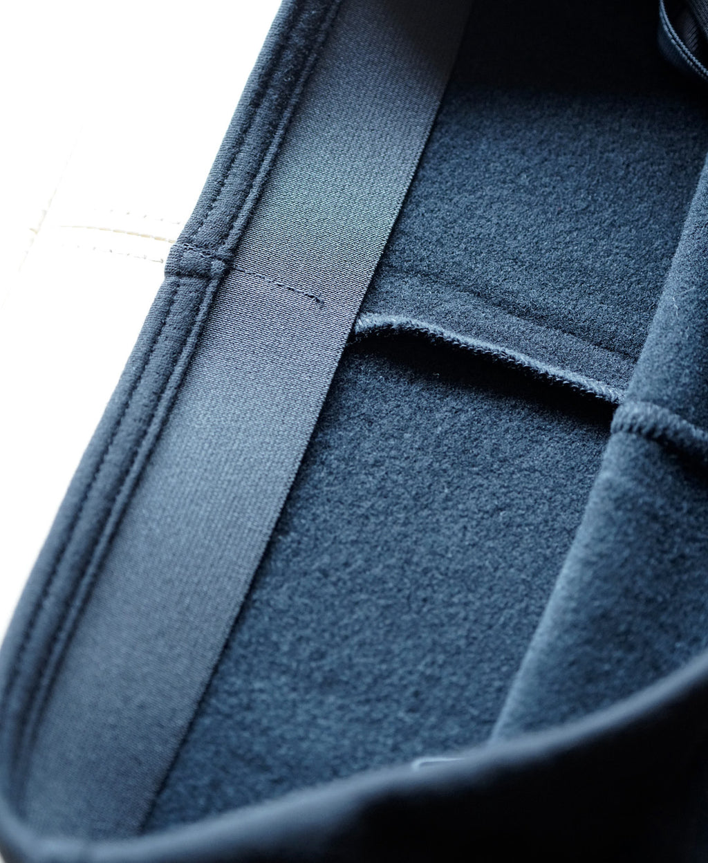 肌に触れる内側の素材を起毛させ柔らかでとろみあるタッチに仕上げ、カシミヤをブレンドし暖かさと上品な艶も備えたジャパンラグジュアリーな素材。