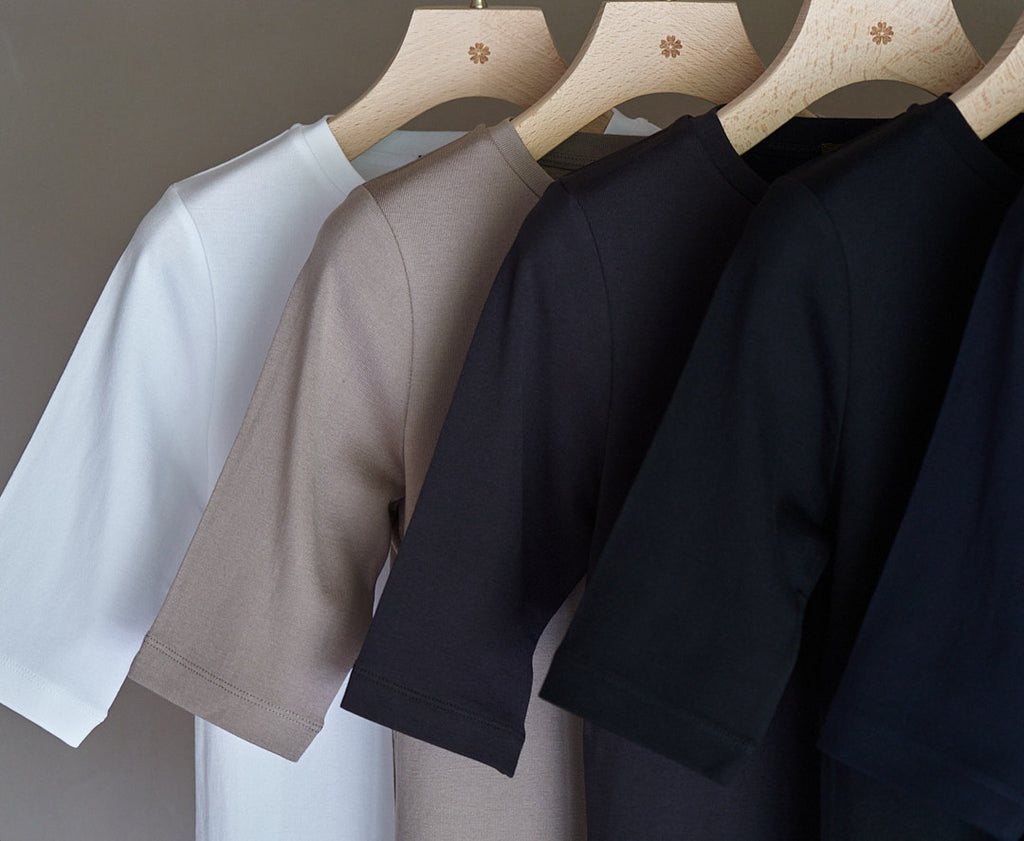 着心地とシルエットを追求しテーラーならではのパターンで仕立てた、心地よさと上品さどちらも備えたTシャツです。